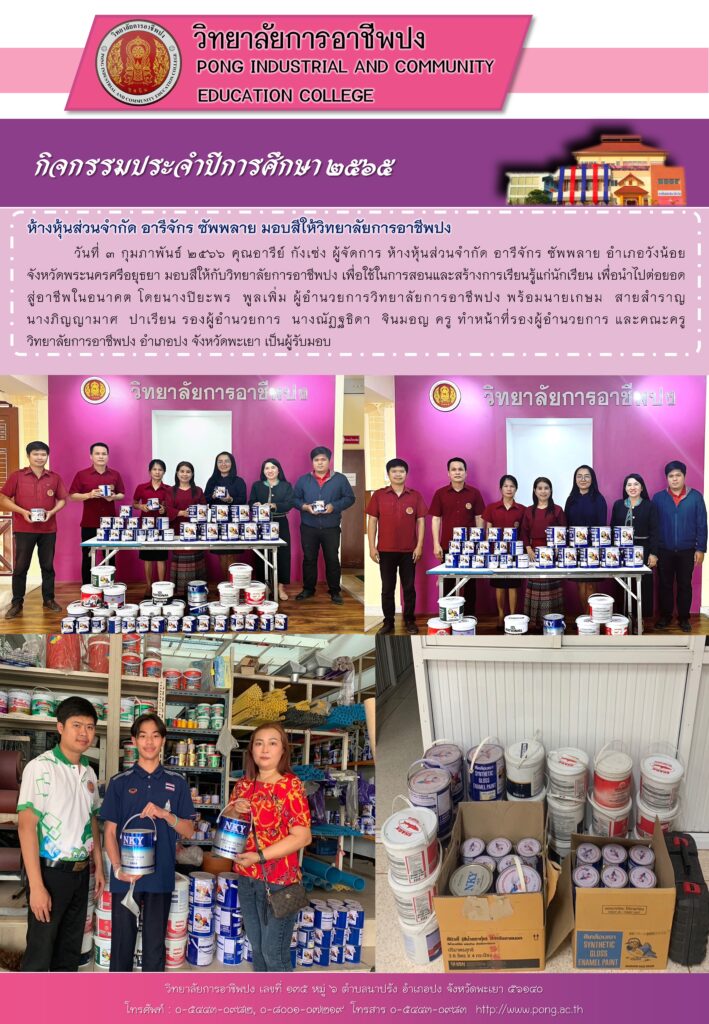 ห้างหุ้นส่วนจำกัด อารีจักร ซัพพลาย มอบสีให้วิทยาลัยการอาชีพปง