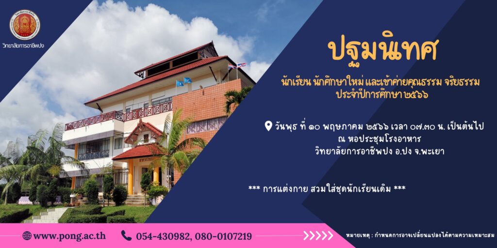 วันที่ ๑๐ พฤษภาคม ๒๕๖๖ ณ หอประชุมโรงอาหาร วิทยาลัยการอาชีพปง
