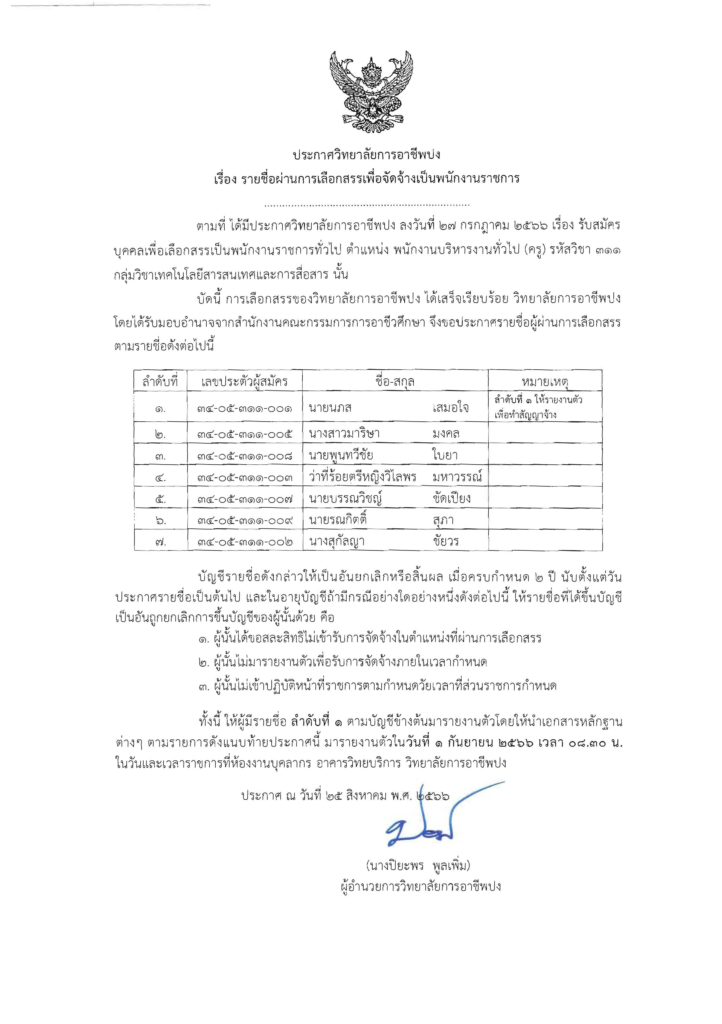 ข่าวประกาศงานบุคลากรบริหารทรัพยากร รายชื่อผ่านการเลือกสรรเพื่อจัดจ้างเป็นพนักงานราชการ รหัสวิชา 311 25/08/2023 ประชาสัมพันธ์ วิทยาลัยการอาชีพปง จำนวนผู้เข้าชม : 162 FacebookFacebookXTwitterLINELine