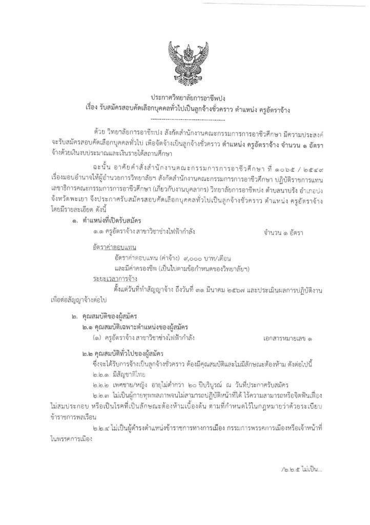 ข่าวประกาศงานบุคลากรบริหารทรัพยากร ประกาศรับสมัครสอบคัดเลือกบุคคลทั่วไปเป็นลูกจ้างชั่วคราวตำเเหน่ง ครูอัตราจ้าง สาชาวิชาช่างไฟฟ้ากำลัง 19/10/2023 ประชาสัมพันธ์ วิทยาลัยการอาชีพปง ประกาศรับสมัครงาน-ชฟ-2566ดาวน์โหลด ใบสมัครงาน-วก.ปง-2566-ดาวน์โหลด จำนวนผู้เข้าชม : 285 FacebookFacebookXTwitterLINELine