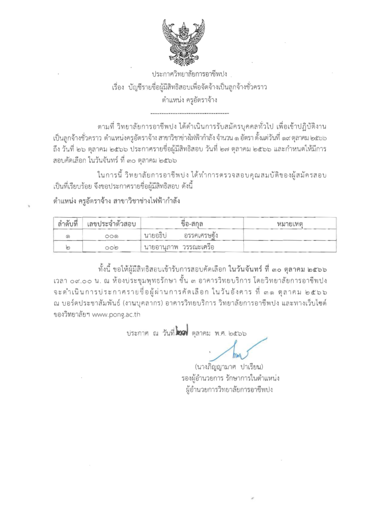 ข่าวประกาศงานบุคลากรบริหารทรัพยากร บัญชีรายชื่อผู้มีสิทธิสอบเพื่อจัดจ้างเป็นลูกจ้างชั่วคราว ตำเเหน่งครูอัตราจ้าง สาขาวิชาช่างไฟฟ้ากำลัง 27/10/2023 ประชาสัมพันธ์ วิทยาลัยการอาชีพปง จำนวนผู้เข้าชม : 146 FacebookFacebookXTwitterLINELine