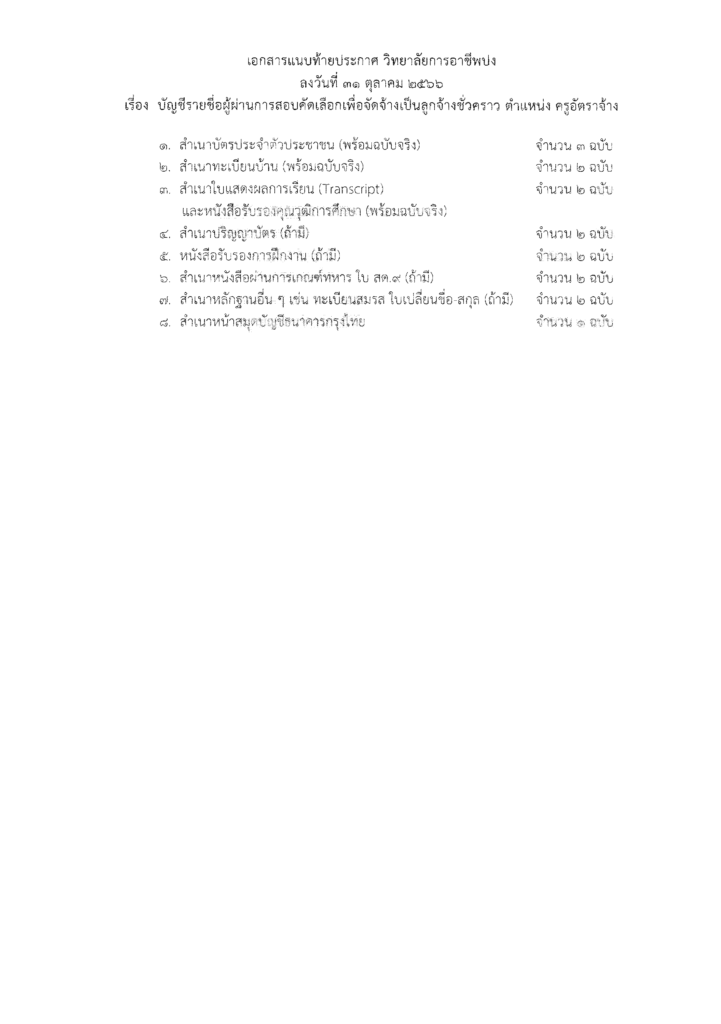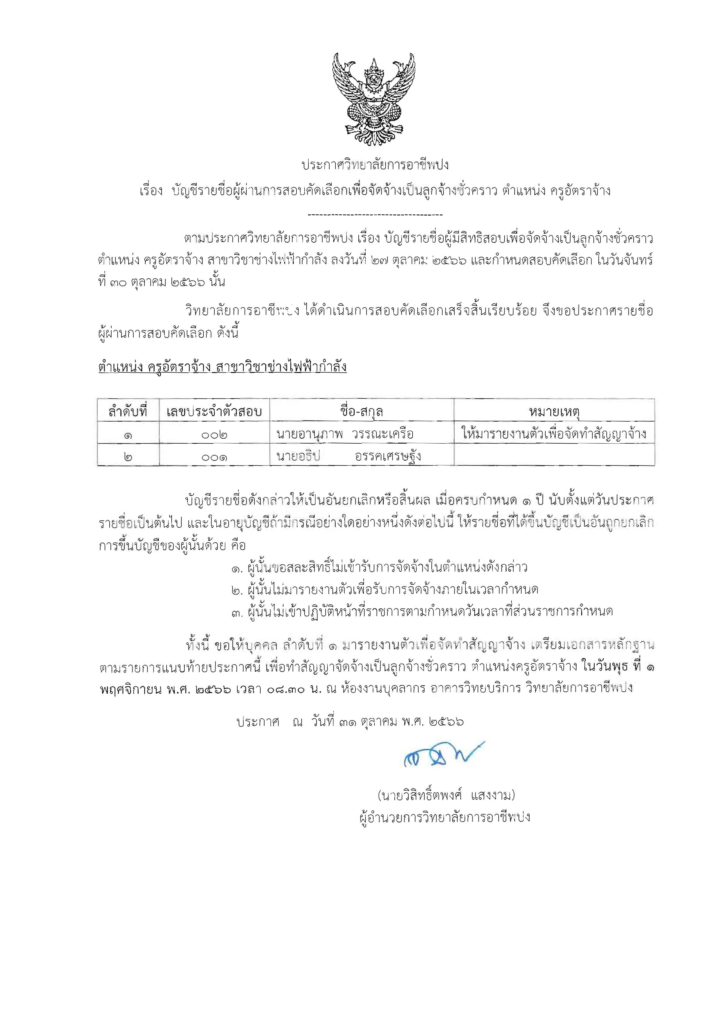 ข่าวประกาศงานบุคลากรบริหารทรัพยากร บัญชีรายชื่อผู้ผ่านการสอบคัดเลือก ตำเเหน่งครูอัตราจ้าง สาขาวิชาช่างไฟฟ้ากำลัง 31/10/2023 ประชาสัมพันธ์ วิทยาลัยการอาชีพปง จำนวนผู้เข้าชม : 146 FacebookFacebookXTwitterLINELine