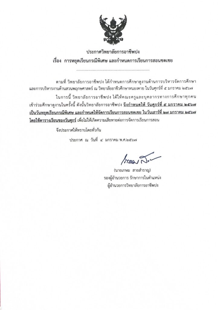 ข่าวประกาศวิชาการ ประกาศหยุดเรียนกรณีพิเศษ 04/01/2024 admin จำนวนผู้เข้าชม : 392 FacebookFacebookXTwitterLINELine