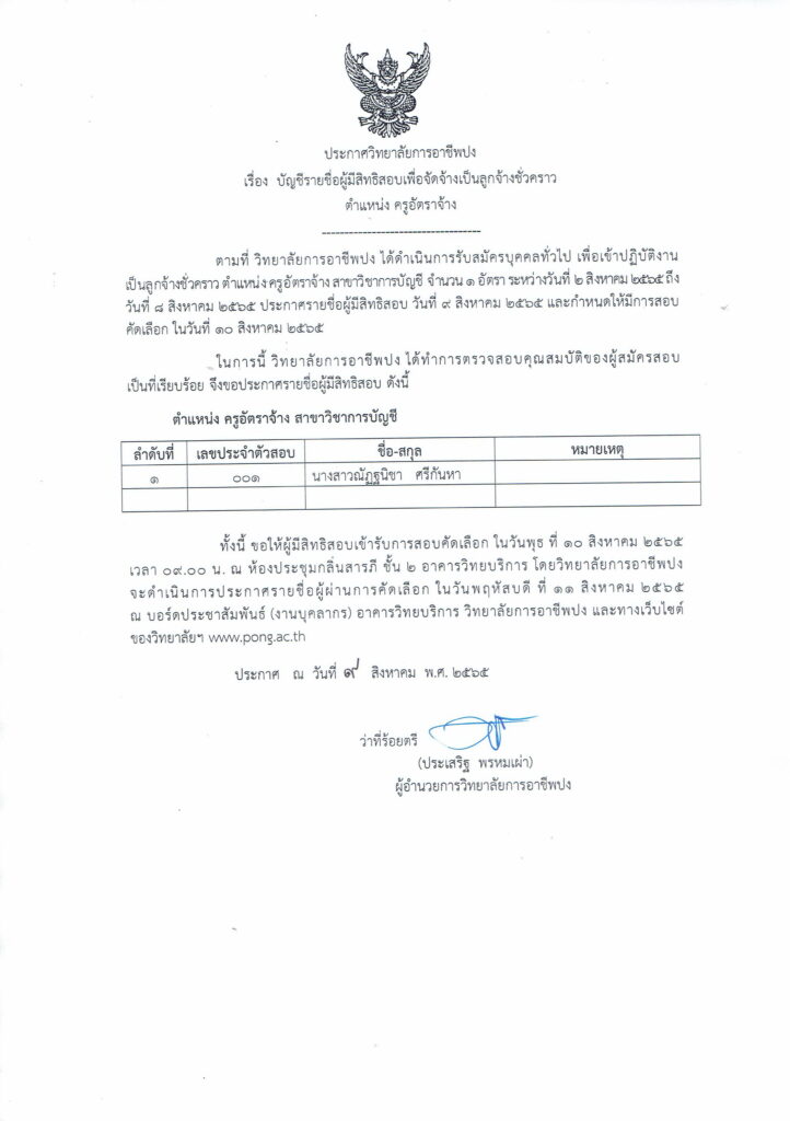 ข่าวประกาศบริหารทรัพยากร บัญชีราชื่อผู้มีสิทธิสอบเพื่อจัดจ้างเป็นลูกจ้างชั่วคราว ตำเเหน่ง ครูอัตราจ้าง สาขาวิชาการบัญชี 09/08/2022 ประชาสัมพันธ์ วิทยาลัยการอาชีพปง จำนวนผู้เข้าชม : 100 FacebookFacebookXTwitterLINELine
